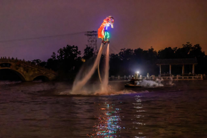 “太精彩了,没想到传统文化还可以这样玩!”看着水上飞狮腾空而起,游客王先生激动地连连赞叹。