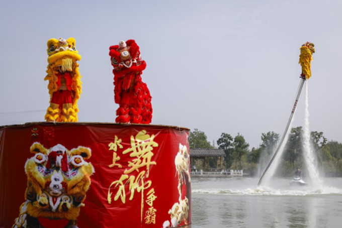 “太精彩了,没想到传统文化还可以这样玩!”看着水上飞狮腾空而起,游客王先生激动地连连赞叹。