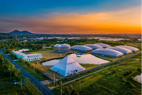 长古旅游公路沿线焕发活力的,远不止于文旅风光。一座座现代化农业园区如雨后春笋般涌现,成为乡村振兴的亮丽风景。位于桥头集镇的安徽现代雾耕农业科技示范园内,一座座造型酷似“金字塔”“鸟巢”“土楼”的智能温控大棚蔚为壮观,在蓝天映衬下充满科技感。阳光洒落在钢结构温室上,折射出斑斓光彩,令人仿佛步入科幻世界中的“未来农场”。