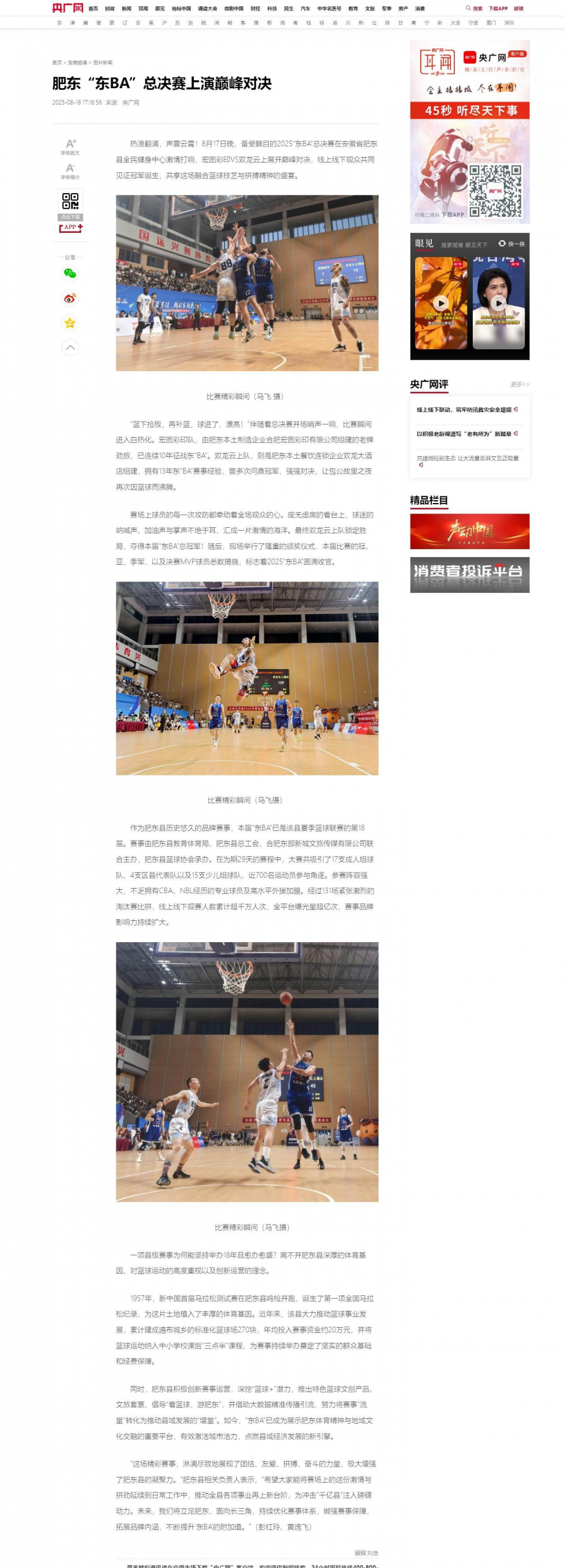 央广网丨肥东“东BA”总决赛上演巅峰对决