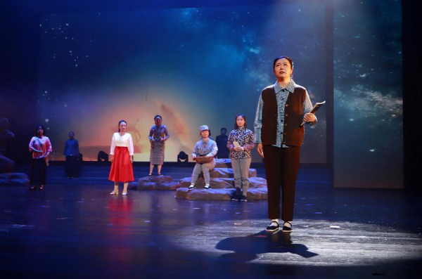 该作品以冰心原诗为情感内核,创新采用“讲述人+母亲群像+群诵”的多元舞台形式,巧妙地将个人情感与家国命运融为一体,生动刻画了母亲在时代风雨中的坚守、奉献与无私大爱。原诗中质朴而深沉的情感在重新诠释中得以升华,不仅成为对万千母亲的崇高礼赞,更谱写了一曲感人至深的民族精神颂歌。舞台上,四位母亲形象跨越历史长河缓缓走来,深情讲述烽火岁月中的离别、教诲、守护与牺牲,最终凝聚为一股温暖而坚定的精神力量,深深打动了在场每一位观众。