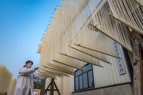 冬天到,挂面香。肥东县是名副其实的挂面之乡,全县20个乡镇(园区)几乎都能看到飘逸如丝的挂面。无论是路边摊、菜市场门口,还是展销会上,总有挂面身影。桥头集镇的竹塘社区,更凭一手挂面技艺,跻身全国三大挂面村之列。这里的挂面不仅入选市级非遗美食,还拿下了国家地理标志证明商标,堪称“面中翘楚”。