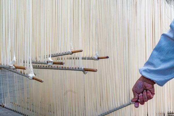 工艺好,面条才好。纯手工制作,是肥东挂面的灵魂。从淘麦、磨粉、和面,到揉面、醒面、盘面,再到上竹、拉升、晾晒……一碗地道的肥东挂面,要经历足足18道工序。温度高低、揉面力道、手法轻重、盐量把握,全凭老师傅的手感与经验。这套手艺传承至今已有100多年的历史。做出的面条细腻筋道,面汤清而不浊,入口绵密柔滑,且自带咸香,无需另放盐。它曾亮相世博会,深受国外友人喜爱。