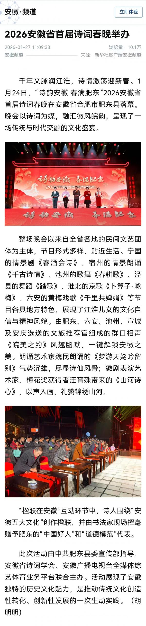 新华社客户端 | 2026安徽省首届诗词春晚在撮街成功举办