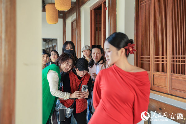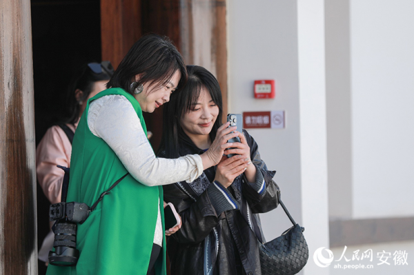 肥东包公故里文化园,摄影爱好者与景区NPC互动。人民网记者 张俊摄