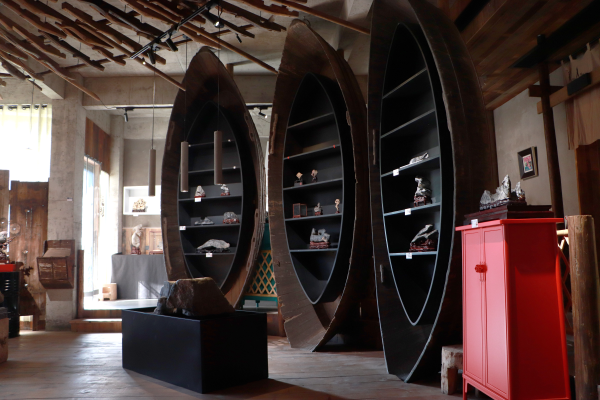 走进“花田·时光里”民宿,浓郁的江淮民居风情扑面而来。前来观展的游客络绎不绝,一方方浑然天成的精美石头静陈其间,或形似悟空,或状如飞鸟,或貌似笔架,与融入巢湖文化元素的茶室、书房、庭院等真实生活空间相映成趣。在柔和灯光映照下,营造出“一峰千寻,一勺绵延”的诗意境界,让游客在移步换景中,与美石不期而遇,沉浸式体验“石入生活”的雅致情趣。
