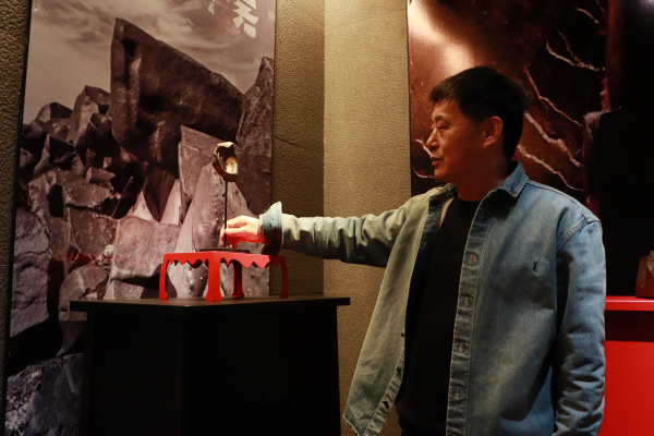 方向奎在介绍赏石。彭红玲 摄