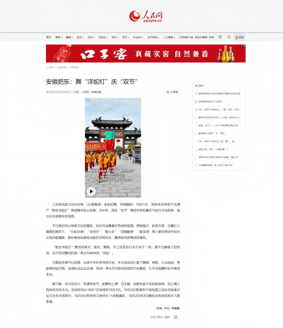 人民网丨安徽肥东:舞“洋蛇灯”庆“双节”