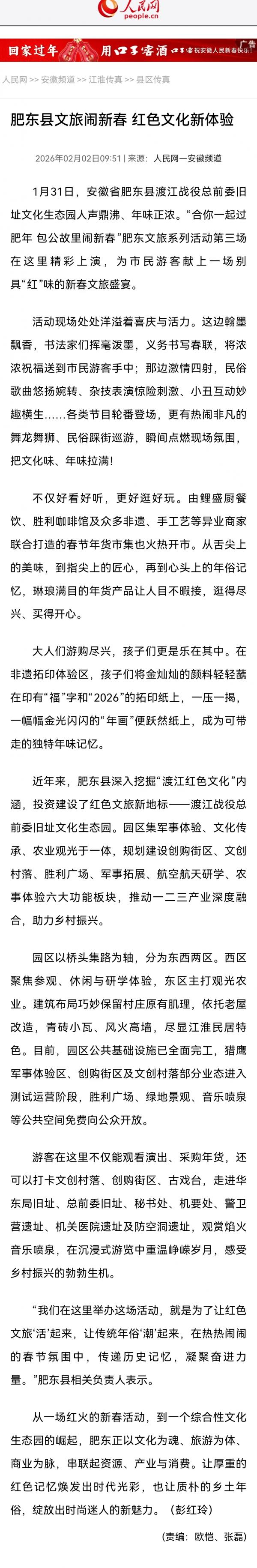 人民网 | 肥东县文旅闹新春 红色文化新体验