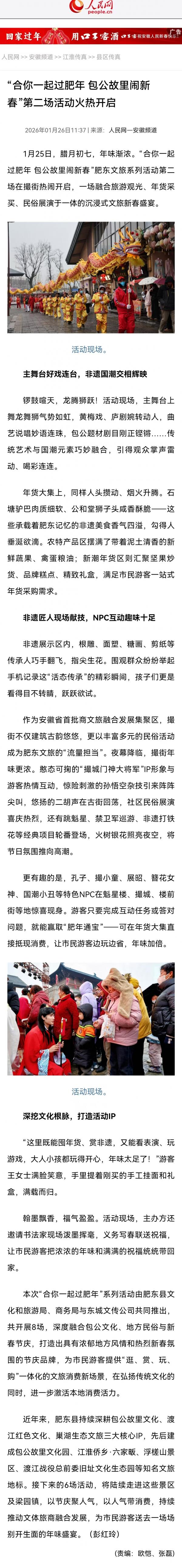 人民网 |“合你一起过肥年 包公故里闹新春”第二场活动火热开启